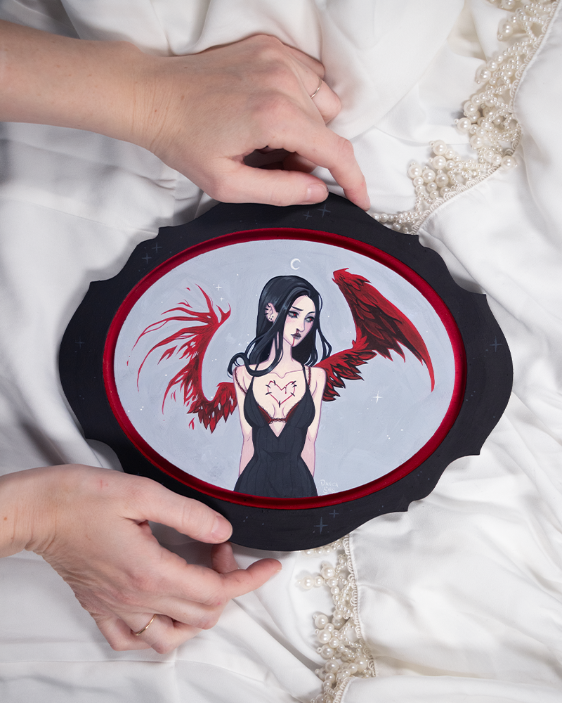 My painting 'Red Wings' explores heartbreak and healing, softness and pain.